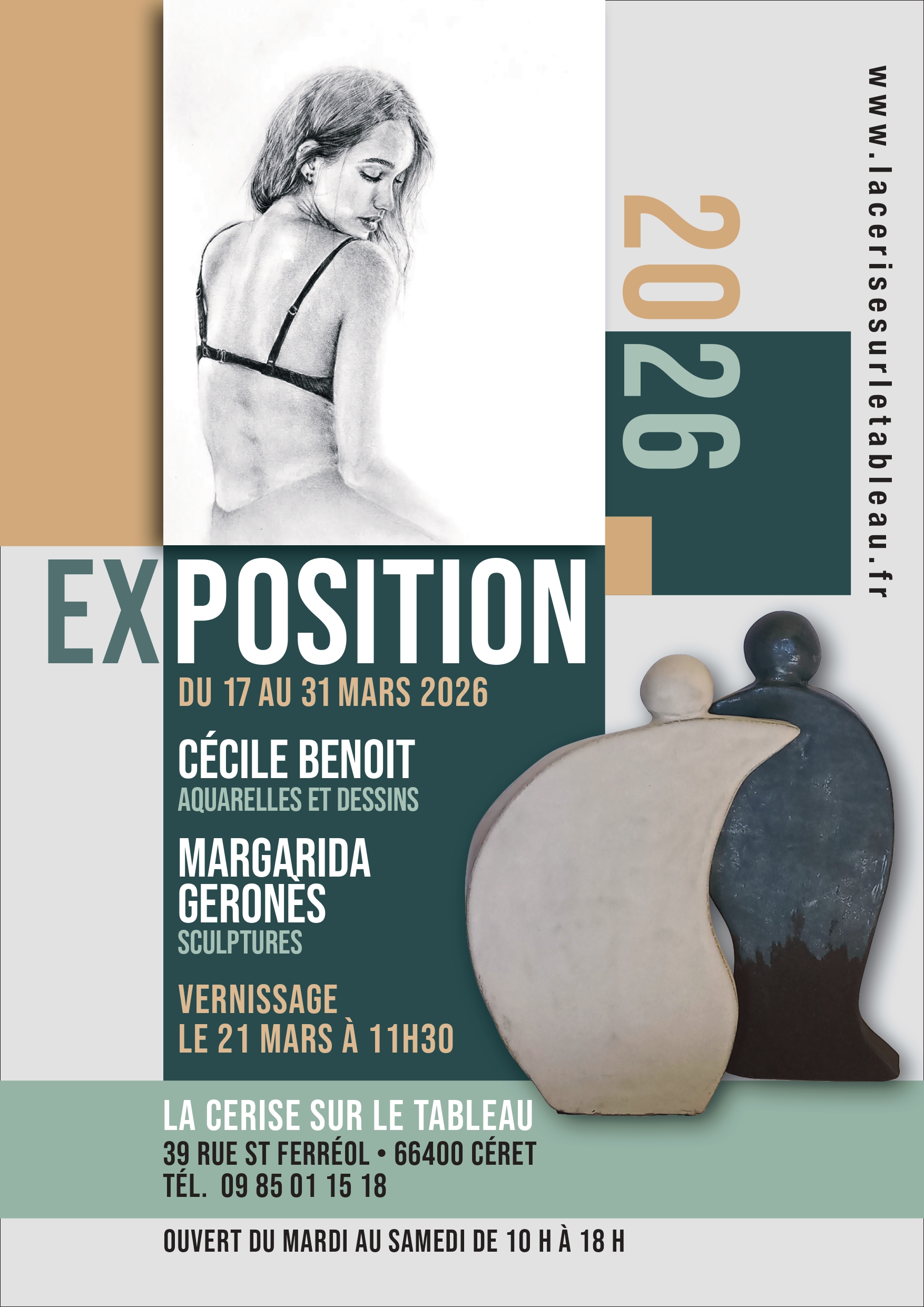 Deux univers artistiques et créatifs réunis; les sculptures de Margarida Geronès I Puig et les peintures de Cécile Benoit. Des œuvres à découvrir du 17 au 31 mars.